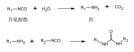 可是随着时间的推移,这些泡沫并不会像啤酒沫或者肥皂泡那样逐渐破碎消失,而是永久地留存下来。原来,反应生成的胺还会会继续寻找尚未与水反应的异氰酸酯并与它发生反应,把自己变成聚氨酯的一部分。也就是说,构成这些泡沫外壁的不再是脆弱的水膜,而是坚固的聚氨酯,因此这些泡沫得以永久保留下来。而由于内部充满了大量微小的气泡,聚氨酯也变得无比轻盈膨松,密度只有原先的几十分之一[3]。