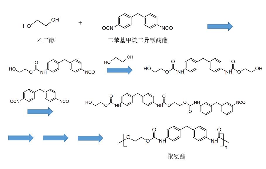 图2 由乙二醇和二苯基甲烷二异氰酸酯生成聚氨酯的反应过程